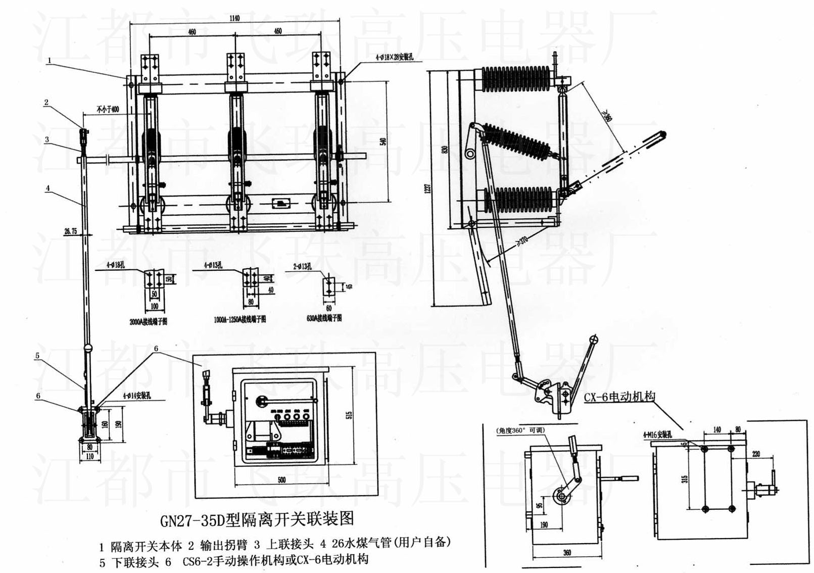 GN27-40.5(D)系列户内高压隔离开关,是三相交流50Hz的高压开关设备,用于电压35kV的电力系统中,作为有电压无负载的情况下分、合电路之用。隔离开关配用CS6-2手动型操动机构或CX6电动机构。